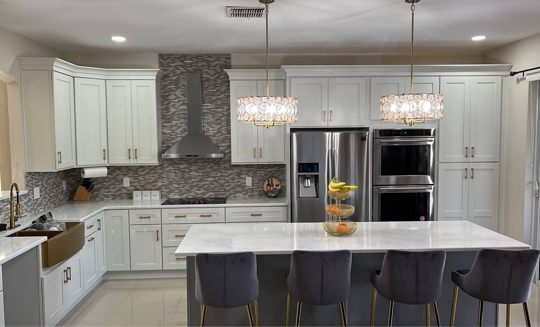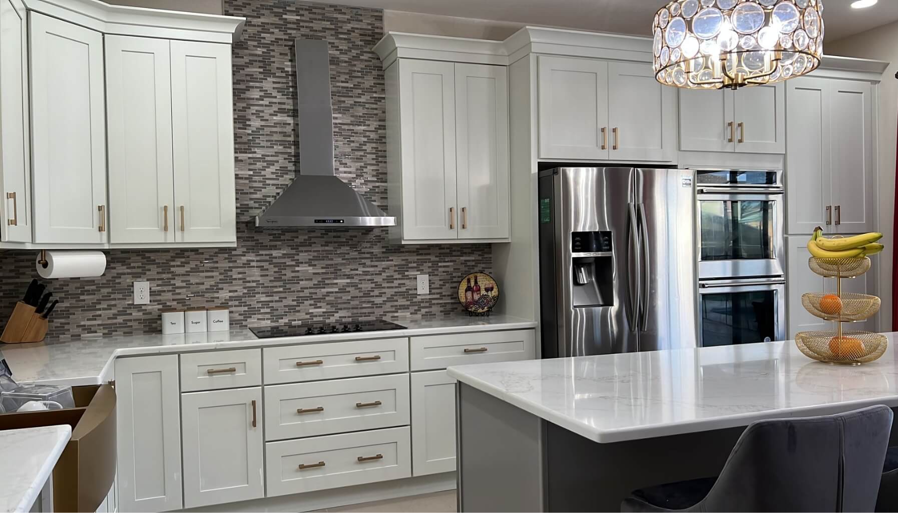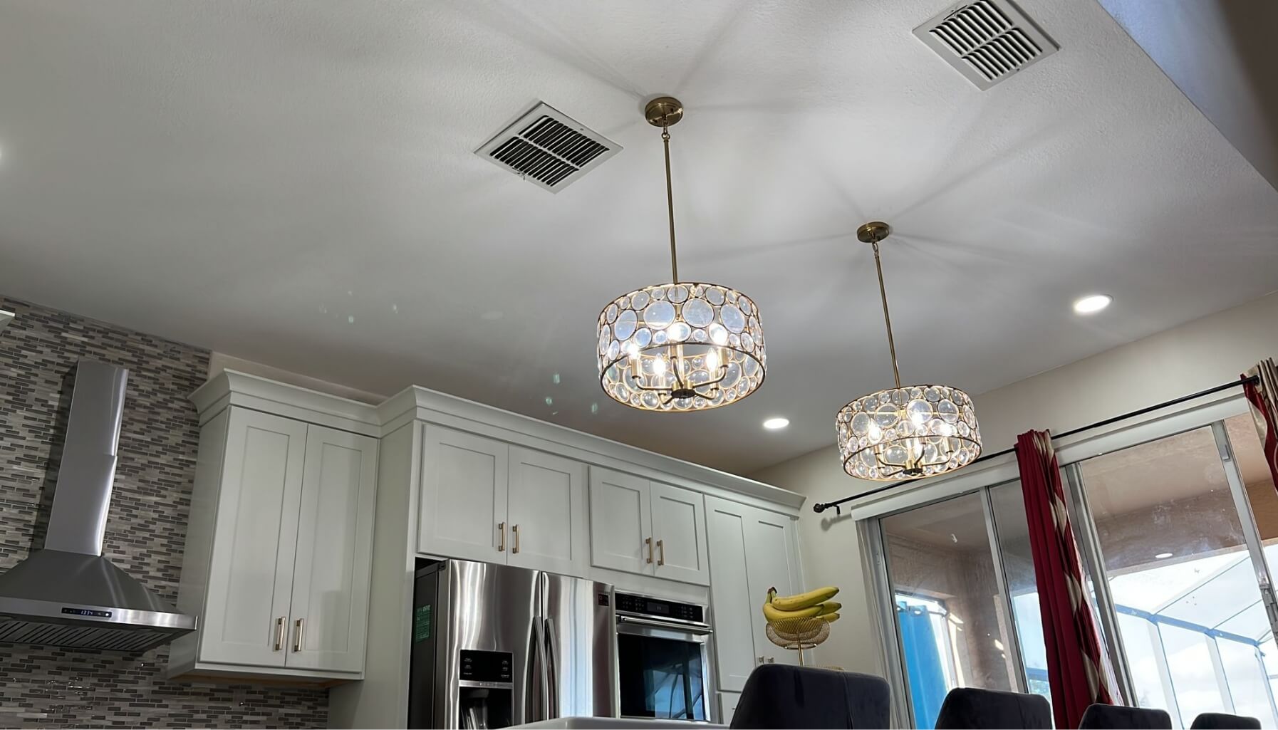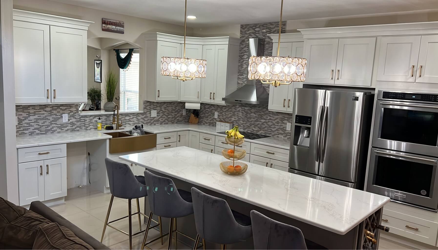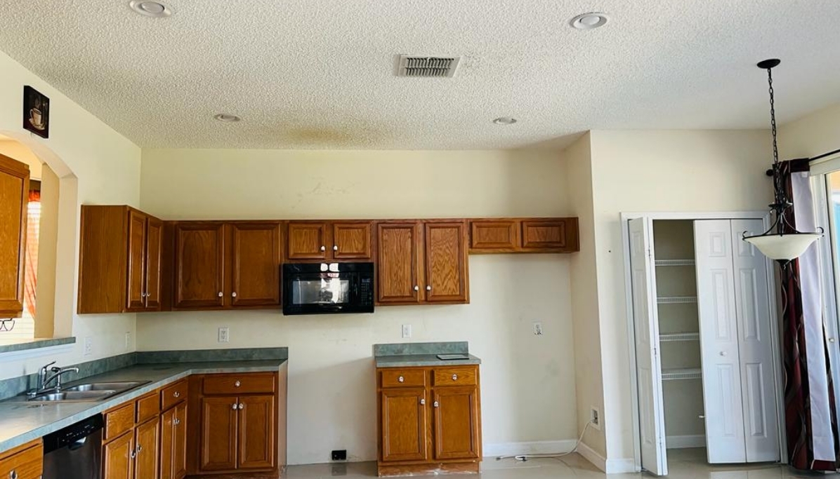 Client wanted to remove the whole wall and pantry that was dividing the whole kitchen, they wanted to create an island right in the middle for additional seating and creating an illusion of higher ceilings. We removed the whole wall dividing the refrigerator from the pantry, ceiling repair when removing the pantry.